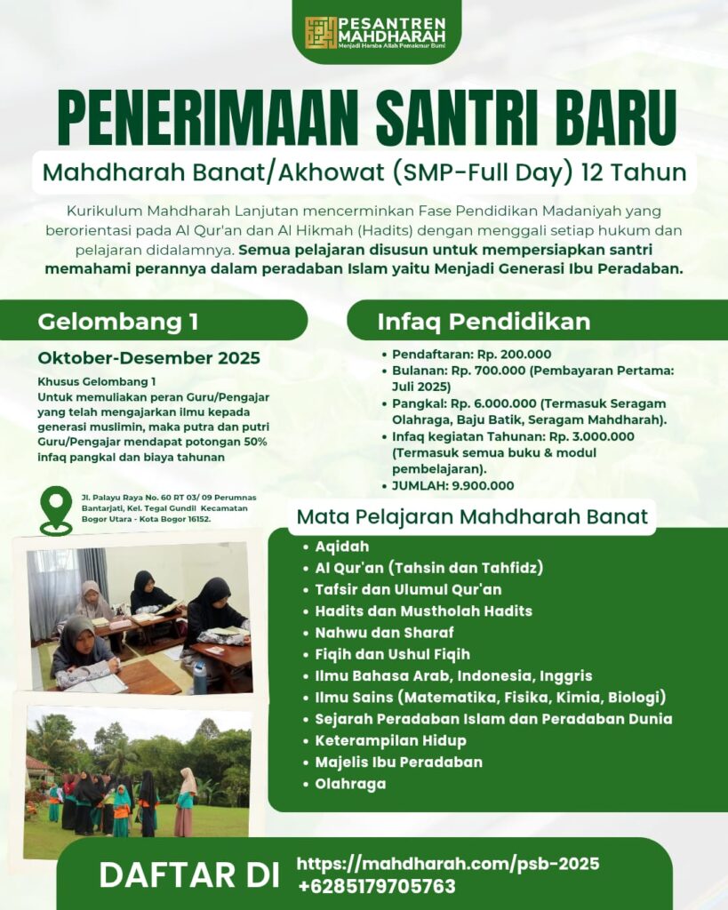 Inilah yang insyaa Allah kita upayakan bersama dalam Project Besar Pendidikan Pemuda di Pondok Pesantren Mahdharah Syabab dan Banat, menyiapkan generasi yang insyaa Allah akan menjadi pengawal kebangkitan peradaban Islam dengan mengambil alih kepemimpinan dunia.