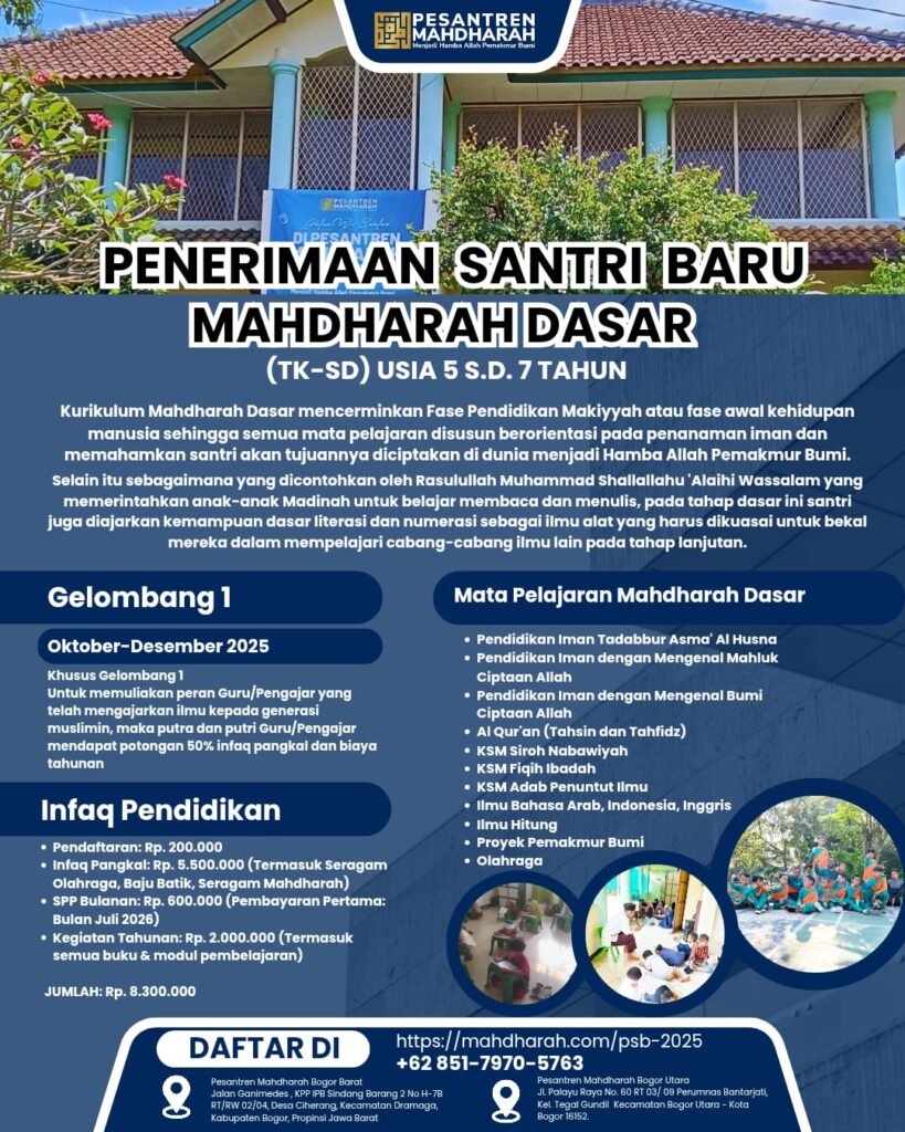 Pesantren Mahdharah adalah salah satu ikhtiar untuk menghadirkan kembali Peradaban Islam, dengan konsep pendidikan yang dipandu risalah, insyaa Allah kami bercita-cita menghadirkan Generasi Ulama Ilmuwan yang menjawab tantangan kebutuhan zaman saat ini.